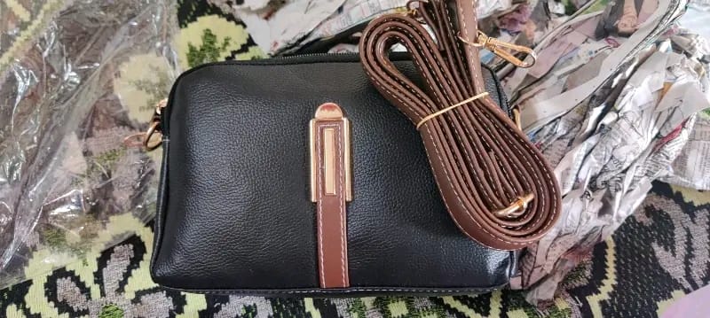 he Veloura Luxe Crossbody is where understated luxury meets everyday practicality. Designed for the modern trendsetter, this handbag features a supple black faux leather body paired with rich brown detailing and gleaming gold hardware for a refined aesthetic. Its structured form houses thoughtfully designed compartments, keeping your belongings neatly organized while maintaining a streamlined look. Finished with an adjustable strap and smooth zipper closures, this bag transitions seamlessly from day to night, making it the perfect companion for workdays, weekend outings, and elegant evenings alike.